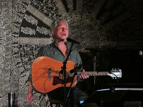 半野外の会場は、ゆっくりと陽が暮れてゆきます。ライブが終われば交流会で、美味しい料理とお酒です。