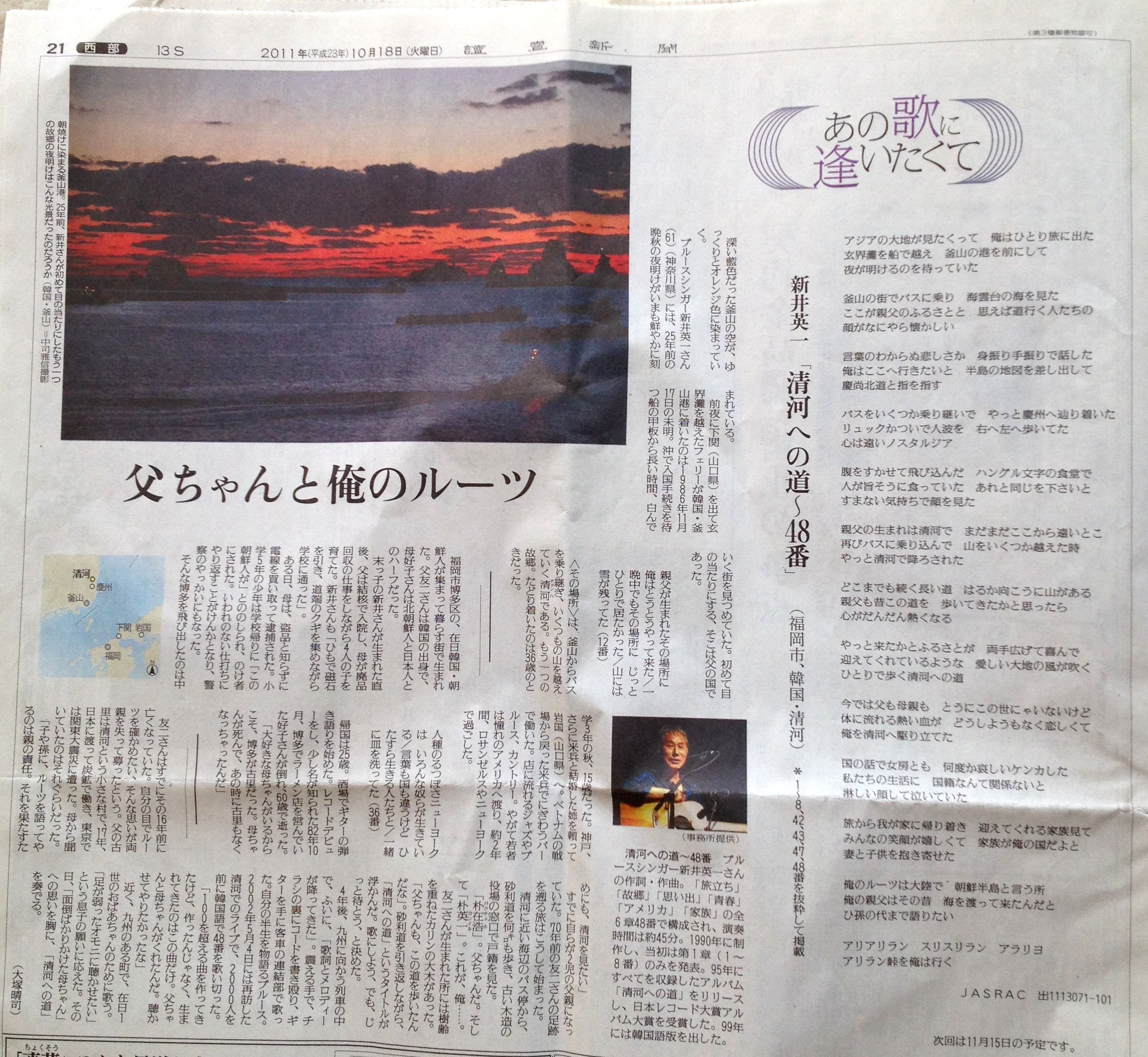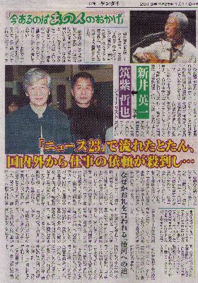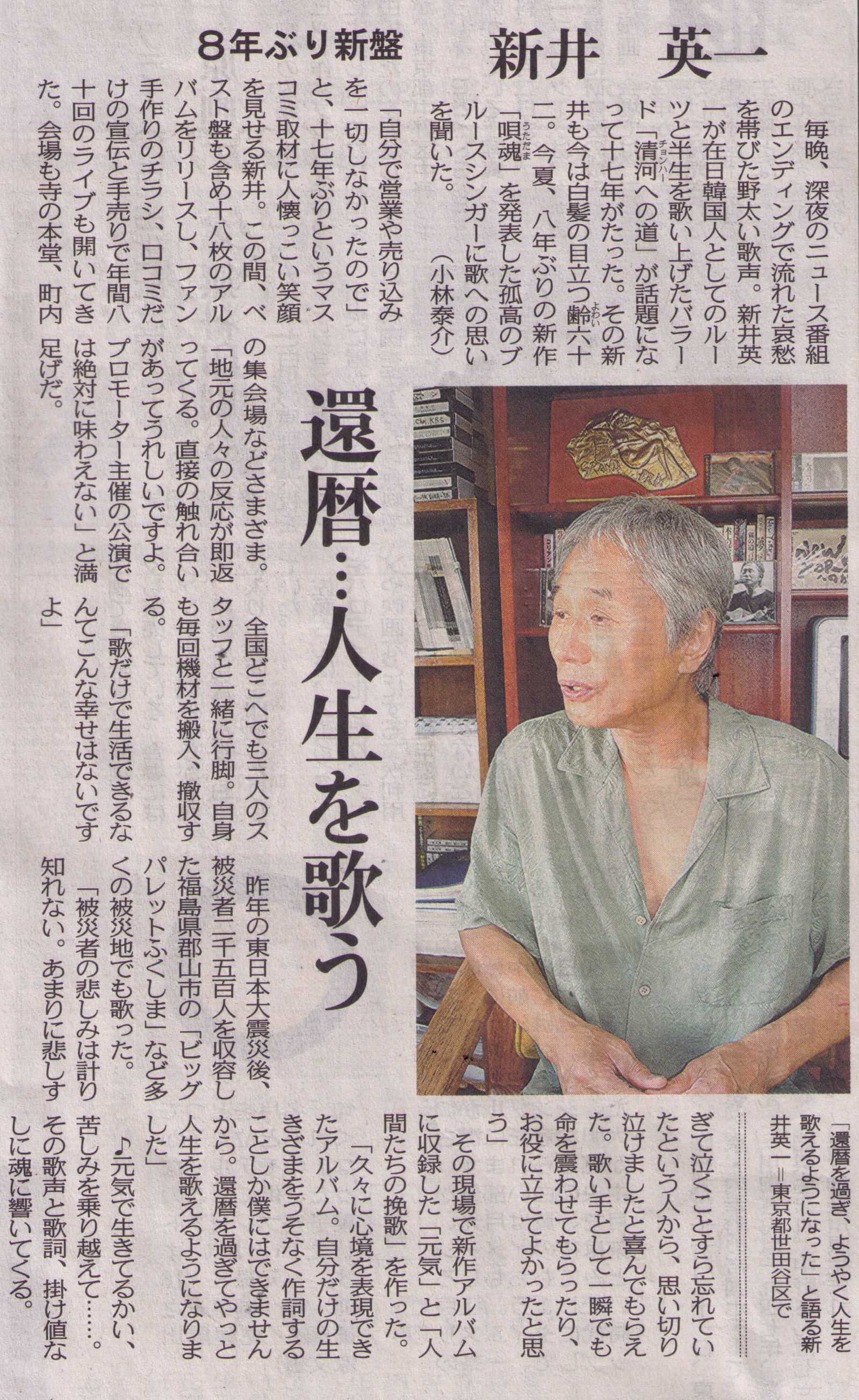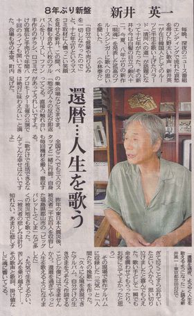 シャンソン歌手の石井好子さんご寄稿の 第86回(99/9/16)、第87回(99/9/17)に新井英一が登場! 東京新聞様、石井好子事務所様のご厚意により、 記事そのものを掲載させて頂きました。 誠にありがとうございます。 (許可を頂いてから、WEBへのアップが遅くなりましたことをお詫び致します。) |